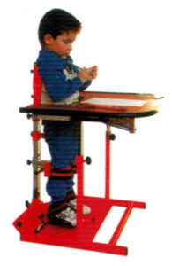 offrir un bénéfice psychologique en permettant à l’enfant de travailler, jouer ou lire en position verticale.