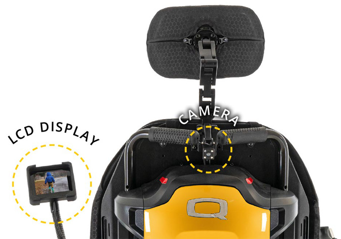 - Un œil à l’arrière : une micro-caméra grand angle installée à l’arrière du fauteuil retransmet l’image en direct.