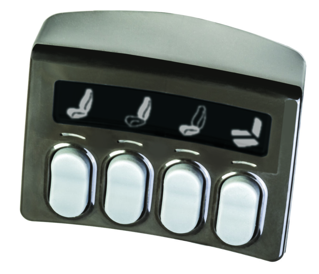 Interface compacte offrant un accès direct, pour l’utilisateur ou l’accompagnateur, à l’ensemble des fonctions essentielles du fauteuil : réglages d’assise, éclairage, changement de mode de conduite, mémoires de position, etc. Toutes les commandes clés sont à portée de main pour un usage rapide et intuitif.