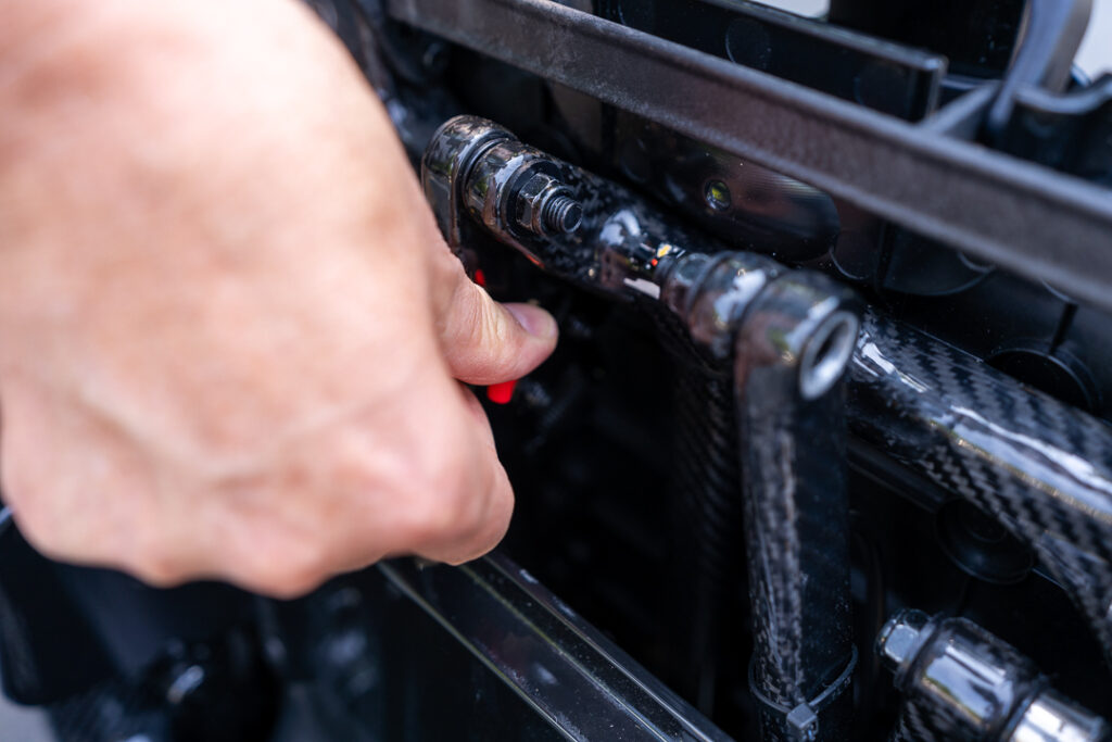 Châssis intégralement en fibre de carbone : robustesse et design élégant.