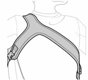 Le harnais en Y (Y-Strap) apporte du soutien thoracique antérieur, mais il est principalement conçue pour corriger la rotation du tronc. En fixant la partie supérieure en double « Y » au-dessus et au-dessous de l’épaule, les sangles de tension permettent de ramener le tronc et l’épaule en rotation vers l’arrière, afin de repositionner l’utilisateur en contact avec le dossier.