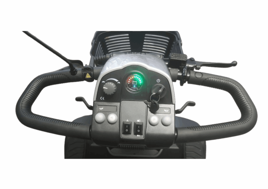 Des touches haut-de-gamme standard comme un guidon Delta enveloppant et réglable à l’infini, un coussin de dossier haut inclinable et l’éclairage LED en font le parfait scooter extérieur.