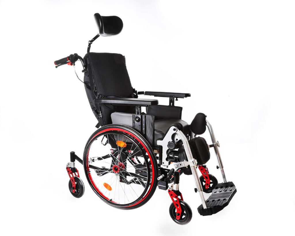 La bascule d’assise est de 25°, et l’activation du dossier jusqu’à 30° d’inclinaison peut, en option, être accessible à l’utilisateur. Le Weely Dystonique conserve les caractéristiques de maniabilité et de franchissement d’obstacle propre à l’ensemble de la gamme.